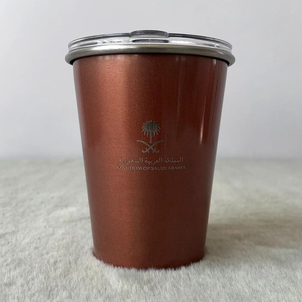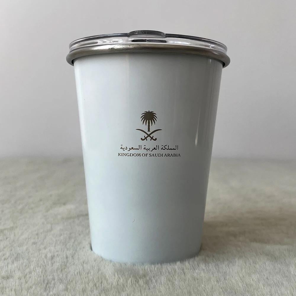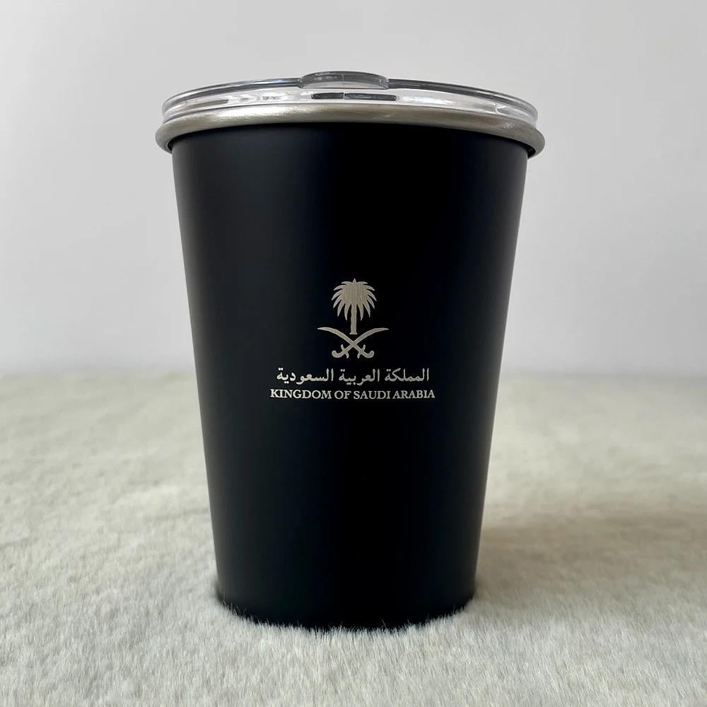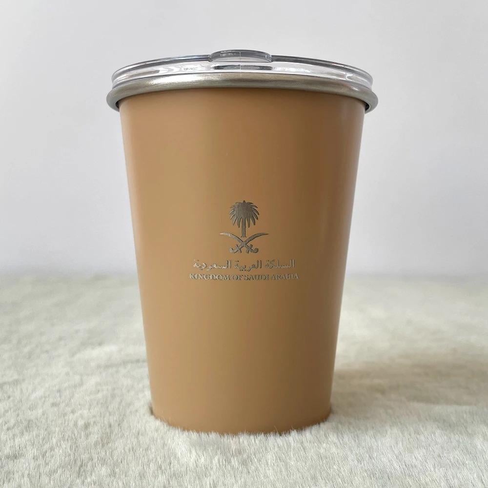 كوب المملكة بسعة 345 مللي مصنوع من الفولاذ المقاوم للصدأ، متوفر بمجموعة ألوان أنيقة تشمل الرمادي، الأحمر الوردي، الفضي، كاكي، الأبيض، الأسود، والأخضر. تصميم متين وعصري يحافظ على حرارة مشروباتك بفعالية.